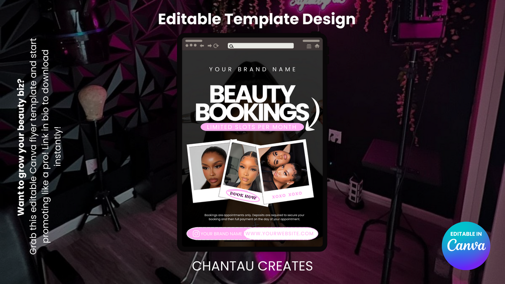 Looking for a quick and stylish way to promote your beauty business? This fully customizable Canva flyer template is the perfect solution! Designed with beauty entrepreneurs in mind, it’s modern, eye-catching, and easy to edit even if you have no design experience.